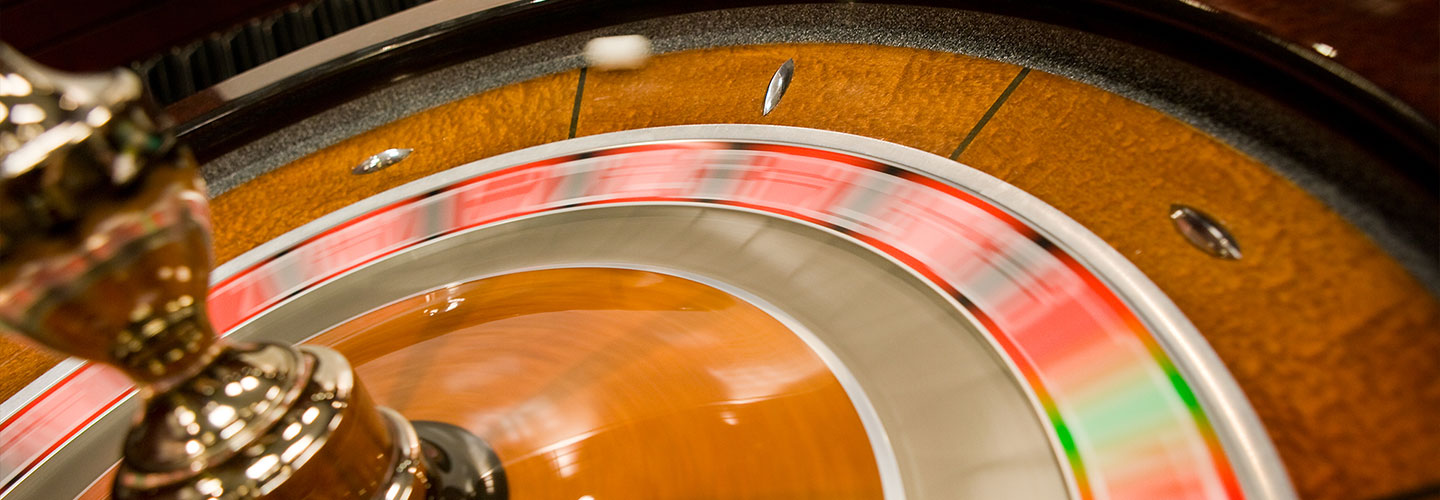 Roulette is a gambling game in which a ball is dropped onto a revolving wheel (roulette wheel) with numbered compartments, the players betting on the number at which the ball will come to rest.